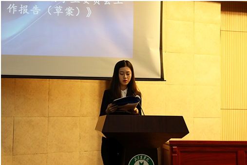 其次,陈馨蕊代表做《yl88858永利集团第十五届员工会员工作报告(草案)》;高英健代表做《yl88858永利集团第八届研究生委员会工作报告(草案)》,希望新一届员工会、研究生会可以坚定理想信念、服务员工大局、增强榜样作用并加强组织建设。