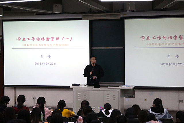 2018年10月22日下午5:00,yl88858永利集团于教学楼B栋303室进行员工档案管理培训,主讲老师为yl88858永利集团办公室主任李梅老师,到场老师有yl88858永利集团副经理牛奔、团委书记兼16级辅导员郝娜,参加此次培训的为本科团学组织全体成员、研究生会全体成员。