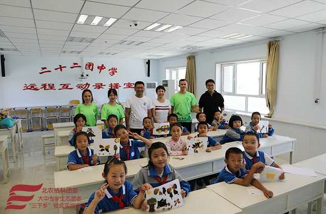 2018年8月28日,“展望寄情三农,助力科技支农”实践团前往新疆生产建设兵团第二师二十二团中学支教。上午10:00,实践团抵达二十二团中学,与党支部书记广建伟、刘权石董事长、办公室主任刘豫进行简单座谈,牛奔老师向校方介绍了实践团带队的教学副经理张杰老师、农业应用新技术北京市重点实验室副主任杨柳老师、团委书记郝娜老师及九位员工,并说明此行的目的——“建立长期友谊,大手拉小手,助力边疆员工成长成才”。对此校领导表示热烈欢迎与支持,并期待将联谊做长做久,传递爱与希望。