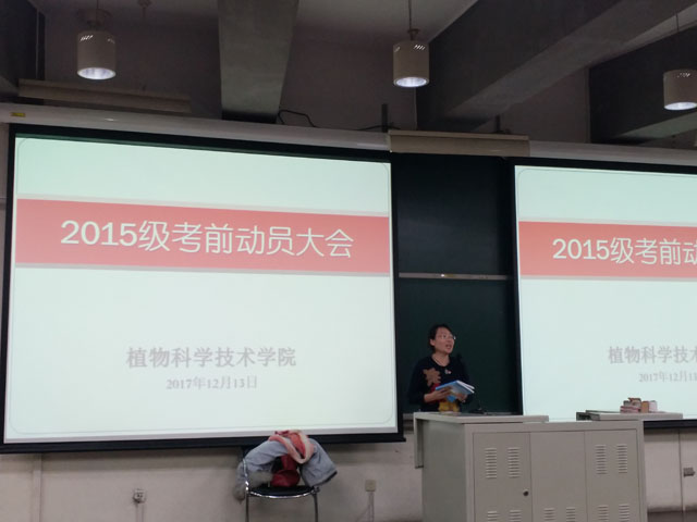大会伊始,汪丽老师,鼓舞同学们认真复习,争取在期末考试中取得好成绩;同时对部分早晚自习玩手机、睡觉的同学提出批评。随后,17级农学班班长刘中甲同学带领全体同学宣誓诚信考试。