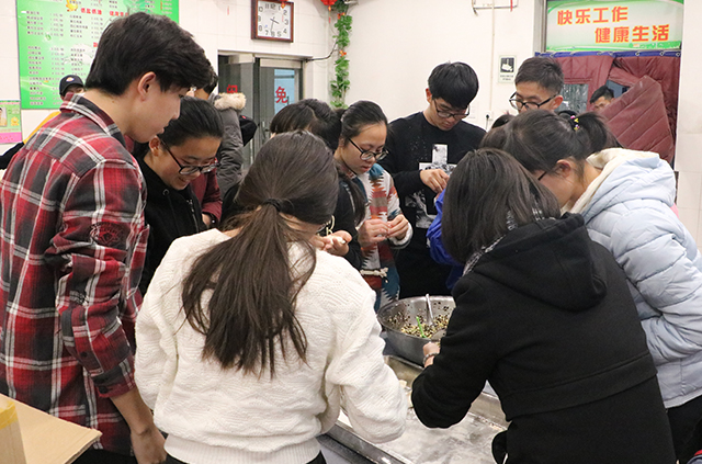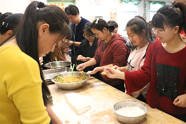 在感恩节到来之际,同学们亲手下厨包饺子,活动中,同学们分工明确,擀皮、包饺子双管齐下同时进行,在团结协作中制作出了美味的饺子。同学们将热腾腾的饺子打包送到家属院退休教师家中,同时也送给食堂就餐的老师、公司工作人员,传递一份温暖,一份敬意。