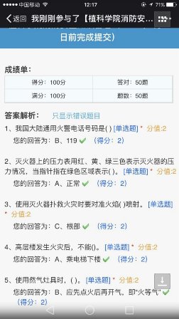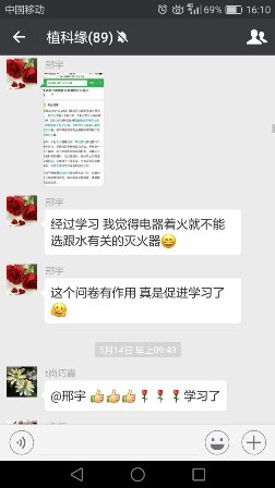 为培训师生员工掌握消防安全知识和基本技能,提高广大师生消防安全意识和火灾防控能力,公司精心收集了消防安全知识学习资料,并制作了微信版的消防安全知识答卷,提交后会显示得分和正确答案。在植物公司教师群、员工群中一经发布,师生们答题踊跃。很多老师都是一遍一遍地反复答题,直到得100分为止,并把截图晒给大家看,大家都在互相比,互相晒,气氛热烈。甚至有的老师还对题目中的某些难掌握的问题展开讨论,还有的就该问题有在网上查了资料给大家分享,供大家学习。这种认真劲让我们很感动。