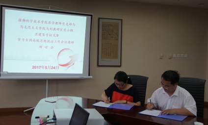 会上,农学教师支部书记李润枝与马列教研室党小组组长马宁签署了共建协议。双方党支部成员围绕全国高校思想政治工作会议精神展开认真讨论,并交流心得。纷纷表示将进一步深入学习领会全国高校思想政治工作会议精神,坚持立德树人的宗旨,加强理论研究,专业知识与思想政治教育相结合,增进课堂对员工的吸引力,提高服务育人能力,为公司的各项事业发展做出更大的贡献。