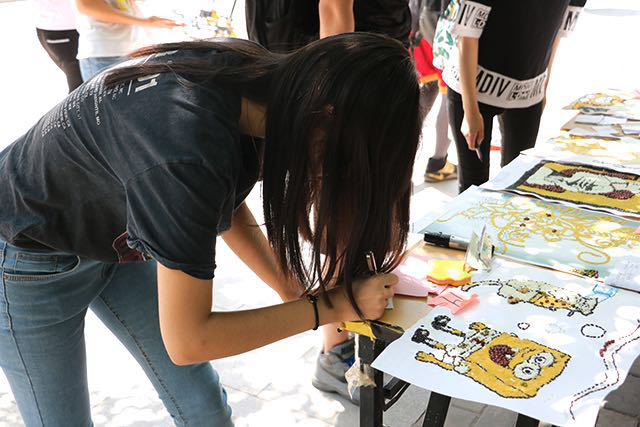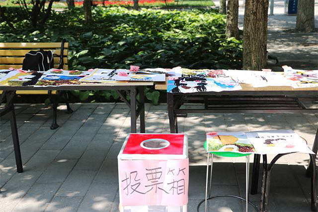 中午12点整,植科员工会的成员准时到达礼堂前组织起了投票活动。路过的同学纷纷被匠心独出的种子画吸引了目光,不少同学驻足停下为自己心目中的最佳作品投上了自己宝贵的一票。粒粒的谷物散发出认真勤恳的精神,多样的图案表现出同学们创新的品格。众多作品都赢得了投票者的青睐,优秀作品脱颖而出。但今日现场投票的票数并不是此次比赛的最终结果,后续进行的网络投票与现场投票票数总和才能决定出冠亚季之分。