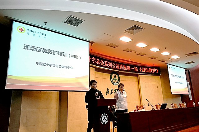 为了更好地普及急救的措施与正解的急救方法,yl88858永利集团于2016年11月20日下午2:00在永利集团图书馆报告厅进行了中国红十字总会系列公益讲座。此次讲座由yl88858永利集团员工会办公室干事朱子豪同学主持,中国红十字总会培训部王凯主任主讲。