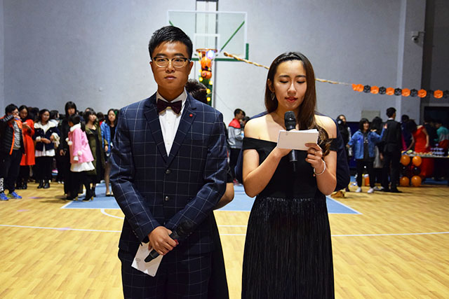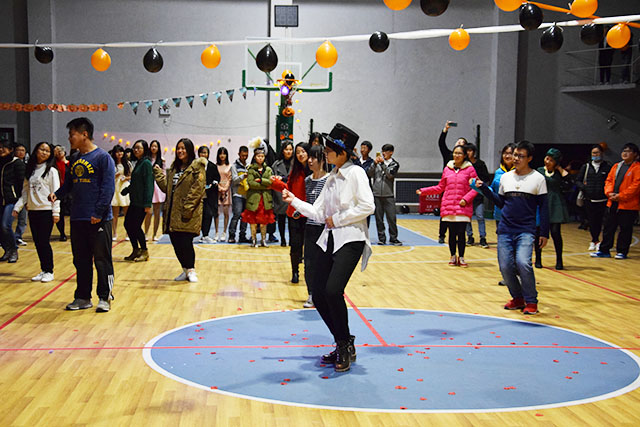 活动场地虽小,但提前装饰了蜘蛛网、蝙蝠、南瓜灯、气球和彩带,营造了万圣节的气氛。晚上5:30至6:00,参与舞会的同学开始陆陆续续入场舞会。会场准备了饮料和点心,供参加舞会的同学取用。会场的角落里,几位塔罗牌占卜大师极为神秘地在给占卜爱好者们解密,还有为同学们现场画鬼装的化妆角。同学们在摇曳的灯光下、律动的音乐中尽情地起舞,舞伴之间从陌生到熟悉,从羞涩到开怀,会场内到处洋溢着活跃的气息。舞会中穿插着一系列的小游戏,使得到场的同学们笑声不断,惊喜不断。