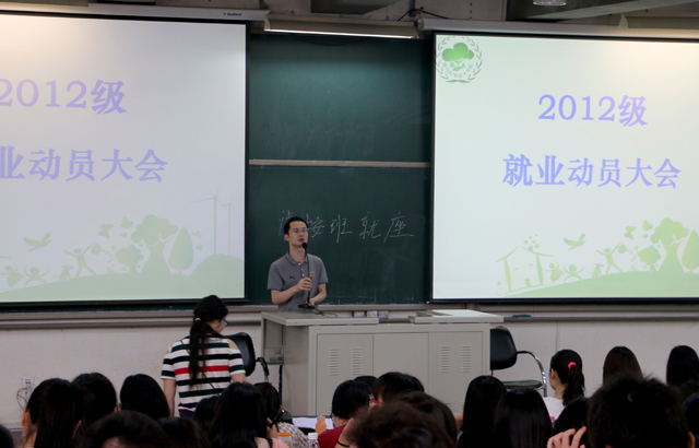 首先,由辅导员贾慧敏老师给同学们做就业动员。她结合2011级的就业情况为同学们介绍就业中涉及到的一些问题,包括如何选择适合自己的工作方向、应届生就业优惠政策及外地生源申请留京的途径等。最后,贾老师提出希望大家把握好此次专业实习的机会,仔细思考自己的就业方向,尽早做出就业规划。