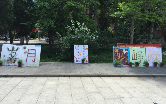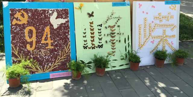 此次活动由农学研究生党支部牵头设计,其他党支部共同参与,活动设计了五块展板,以94周年为主题的logo板,用种子画的方式展示,红豆为背景,玉米、麦穗、瓜子为配画素材,让这个展板栩栩如生。园艺研究生1支部用树叶设计的盆景画,园艺研究生2支部设计的蔬菜画,植保研究生党支部的蝴蝶标本画,资环本科生党支部的废旧勺的拼贴画,共同勾绘了“岁月峥嵘”四个大字,党员在制作的过程中不仅发挥专业特色,而且深刻了解党史,是一次很好的结合专业的主题教育活动。其他团支部成员也参与其中,很好践行了党建带团建的工作模式。