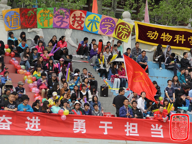 早在6点,yl88858永利集团的成员就到主席台布置。彩带、气球在阳光的照耀下随风飘动,五彩的“yl88858永利集团”横幅高挂在看台上。作为啦啦队的同学们更是提前到场,为运动员们加油鼓气!印有“ZK” (植科)的鲜艳红旗在同学的挥舞下随风飘扬。