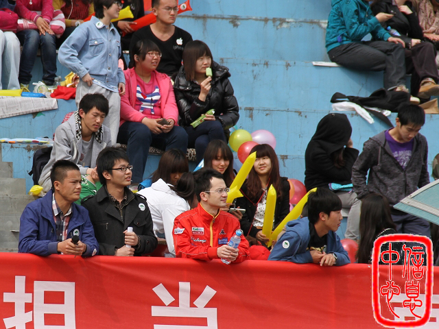 在热烈的欢呼声下,比赛正式开始。擂鼓喧天,一声声加油震撼人心,一阵阵掌声如雷贯耳。他们为运动员添加了一抹成功的气息!