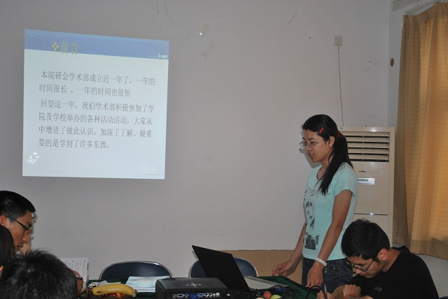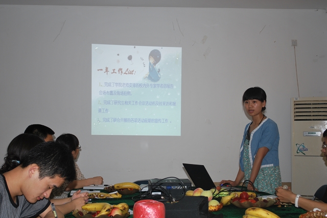 总结大会由公司研究生会主席胡家峰主持,接着各个部门(主席团、办公室、学术部、生活部、实践部、文艺部、外联部)的部长代表本部门做了上年度的工作总结,分析工作中存在的问题,并针对问题提出了下一步工作展望。贾老师对植科研会的工作给予了充分的肯定,也针对研会工作实际指出了确实存在的问题。同时,贾老师以亲身经历鼓励研会全体成员以更加饱满的热情做好本职工作,为植科研会美好明天做出贡献。