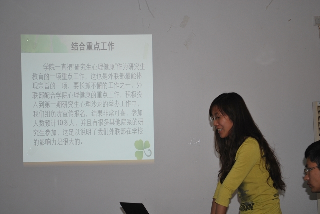 yl88858永利集团研究生会2010-2011学年工作总结暨暑期实践活动动员大会于2011年6月21日下午16:00时在2号办公楼2015室召开,研究生辅导员贾慧敏老师与会指导。