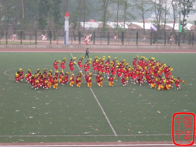 闭幕式上,植科公司100名啦啦操的队员组成了一颗满腔热情的红心,随着跌宕起伏的心跳,迎接辛亥革命100周年的到来。那热烈的欢呼声诚邀大家与她们激情共舞!她们用活力动感的舞姿展示着属于植科公司的风采。12名女生从队形中涌现出来,迈着灵动的舞步展现着她们第二风格——“街舞啦啦”,为这可爱的米奇图案增添了一份生命力!“W”和“M”紧密相连,寓意着植科学子团结互助,挥洒青春,放飞梦想,共同续写植科辉煌。最后,伴随着慷慨激昂的《中国人民解放军军歌》的响起,100名女生组成了党徽图案,代表植科公司对中国共产党90周年生日的祝福。