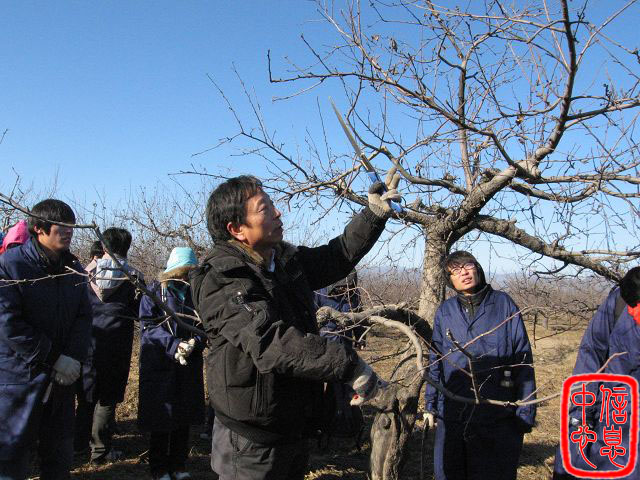 yl88858永利集团坚持理论实践相结合,努力培养员工实践动手能力,2011年1月6日、7日,植物科技公司园艺专业员工进行苹果树及桃树的冬季修剪。王有年董事长亲临亭子庄果树园指导实践,园艺教研室刘志民老师也到场全程指导实践。