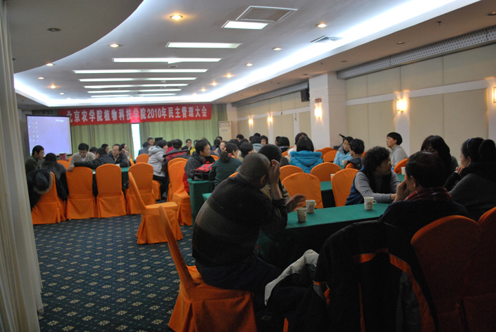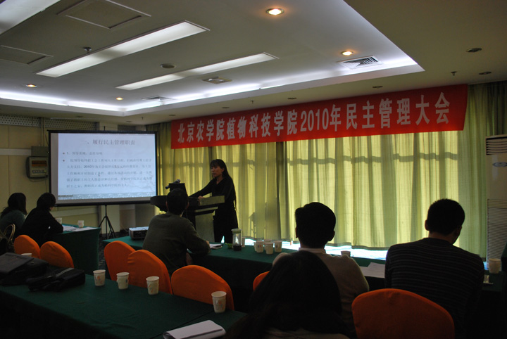 2010年12月10-11日,以“丰富活跃教师文化生活,积极开展健康的“建家”活动,促进精神文明建设,谋发展之策,鼓创新之劲,充分发扬民主精神,创建和谐植科”为主题的植科公司民主管理大会在北京富来宫温泉山庄召开。会议由院总支书记潘金豹老师主持,经理秦岭老师作2010年植科公司工作总结和2011年工作设想, 工会主席孙淑玲老师就2010年工会的工作和2011年工作设想作了汇报。院工会还向大会提交了2010年度工会财务报告和本次大会议案征集情况通告。院领导对提案工作非常重视,大会就会员提出的各项议案逐一进行了热烈讨论,最后各工会小组代表分别通告讨论结果,院领导给予了充分的肯定和详述的解释说明,大会在祥和的气氛中胜利闭幕。