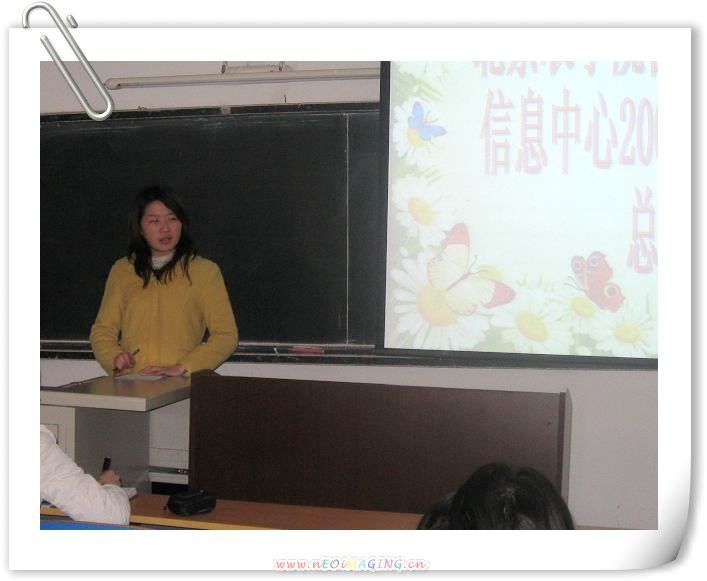 信息中心指导老师贾慧敏对大家的成绩予以肯定。她说:“总结的目的在于发展未来”。本学期信息中心的重点是要注重培养创新意识,注重三部合作、“强强联手”的创作。她特别强调,信息中心是一个大家庭,每位同学来到信息中心,无论时间长短,定要有所学,有所获,不留遗憾。新的一年,信息中心的成员们将伴着信息中心的发展不断成长进步。