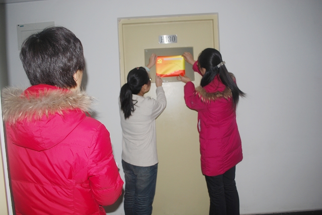 一名党员,一面旗帜,携手共创文明寝室。公司多年来,一直为员工党员宿舍张贴示范牌,以期达到激励员工携手共创文明宿舍,起到先锋模范的带头作用,取得了良好的效果。鉴于员工党员流动性大,宿舍调整周期短,宿舍示范牌也需及时调整更换。植科公司党总支集中开展员工党员宿舍更换示范牌活动,重新制作示范牌,为新党员宿舍张贴示范牌,同时要求非党员同学们及时清理门前宿舍牌,做到统一规范。并于12月8日上午10:00,特别邀请员工处主管员工宿舍工作的郭玉刚、员工处主管党建工作的牟玉荣老师和公司副经理赵金芳、辅导员贾慧敏一起为员工党员宿舍张贴、更换示范牌。