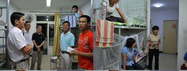 2009年8月28日晚上,yl88858永利集团院领导带领辅导员、2009级班主任及班助前往宿舍看望新生。