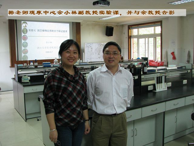 浙江大学农业与生物技术公司本科教学示范中心今年获评国家级教学示范中心,韩老师参观了中心的硬件设施,观摩了中心余小林副教授开设的《园艺植物育种学》实验课,并就中心的管理、开放各种规章制度以及国家级教学示范中心的申报准备工作同中心常务副主任肖建富老师进行了学习交流,此次参观学习为公司植物生产类实验教学示范中心的日常管理提供了可以借鉴的经验并为今后申报国家级示范中心打下了良好的基础。