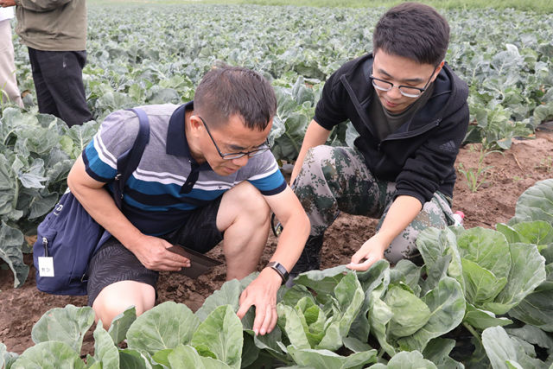 在张书记的带领下,由带队老师郝娜、果树专家王建文老师、园艺专家谷建田老师和四位同学组成的技术指导组来到了该村的二年生欧李果田地。专业老师就当地欧李果的虫害和杂草较多的问题在现场进行了相应的技术指导。随后,技术指导组来到了菜花和甘蓝田地,经专业老师指导,找出了这些蔬菜产生虫害和生理性病害的原因,并为种植户提供了相应病虫害防治的方法。