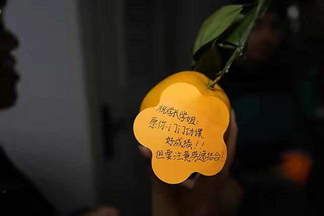 橙,寓意“成功”,承载了公司领导对2020届考研学子的殷切关心与期望。每一个香甜的橙上还加入了老师、同学们浓情的祝福,各具特色,“橙”意满满。植科学子们通过努力战至今日,从未停止学习的步伐。深夜寂静的教学楼中,满是他们身着冬衣挑灯夜战的背影;天刚蒙蒙亮,考研学子已奋笔疾书,抓紧一分一秒学习;图书馆满座,已成公司每日标配。大战在即,公司送上橙子,带给考研学子一丝甘甜,更是带去植科公司深深地祝福,祝他们勇攀高峰,马到“橙”功。