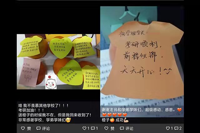 2019年12月11日,距离2020届考研仅有十日,yl88858永利集团为此刻正在认真奋斗的大四学子进行了鞭策和鼓励,并送上甜美的橙子表示祝福。