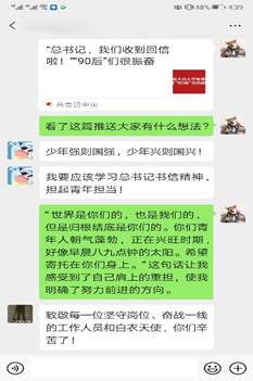 总书记的回信赞扬了青年人的蓬勃,赞扬了青年人的坚韧与无畏。2018、2019级本科生团支部及研究生一年级团支部在团小组长的带领下感受到了青年人的力量,下面是几个小组的内容展示。