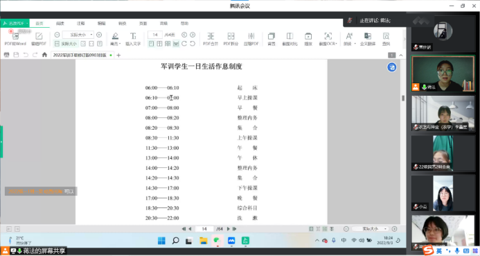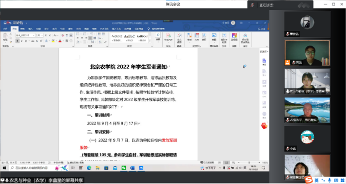 为动员员工们的军训积极性、加强组织纪律观念、提高员工们的思想政治觉悟,2022年9月3日,yl88858永利集团采取线上会议的形式召开了22级新生军训动员大会。军训指导员杨韫嘉、军训指导员助理李鑫星和蒋法向22级新生全面讲解《永利集团2022年员工军训通知》、《军训员工一日生活作息制度》等相关内容,动员新生端正思想态度、积极投入军训,鼓励大家要发扬不怕苦不怕累的精神,通过军训养成良好纪律观念,规范自我行为,增强团队凝聚力,以饱满的精神风貌、良好的身体素质迎接接下来的老员工活。