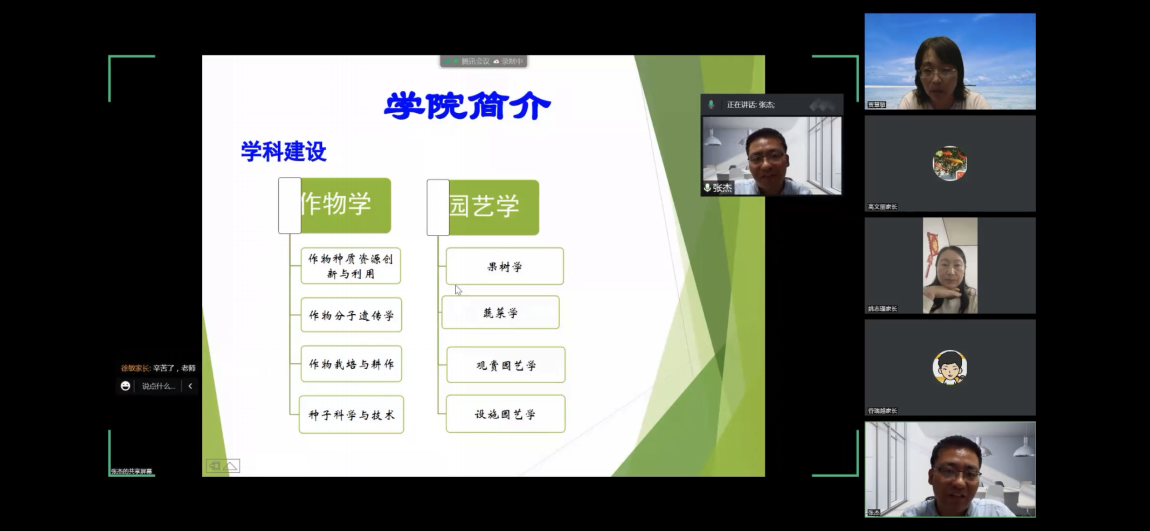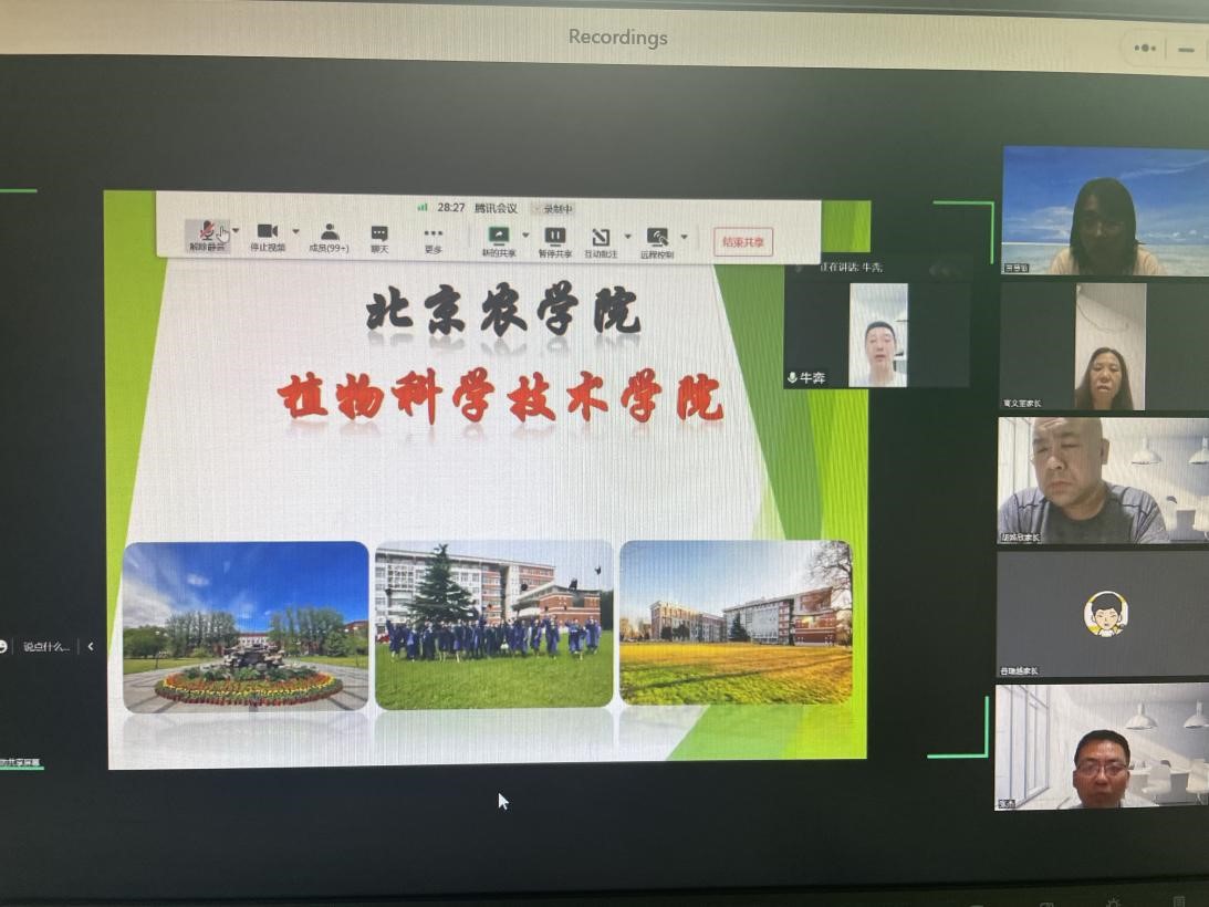 “把孩子交给我们,我们会尽全力守护员工在公司的这片净土上快乐成长”,“强大的科研团队和实验平台,员工在硕士阶段定会学有所获”,腾讯会议上,植科公司老师如数家珍的讲述着新生研究生入校后学习和科研情况。屏幕上不断闪烁着“谢谢老师、老师辛苦了”的字幕。这是一场特别的家长会,是首次召开的研究生家长会。为促进家校联合,搭建教育沟通平台,9月15日,公司党总支副书记牛奔、科研副经理张杰、辅导员贾慧敏及2022级全体新生研究生家长进行了线上沟通交流。