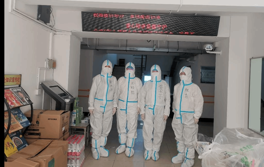 6号楼主要是植科、动科、生资、园林的研究生女生宿舍,共计310余人,孙路路老师作为支援老师主要负责员工的餐食、防疫物资等的发放,以及及时解决员工的各种诉求。每天需要穿着密不透风的防护服工作,一餐下来,衣服往往都是湿透的,口罩勒的鼻子发红,耳朵都磨破了,孙老师也没有一句怨言,她老是跟6号楼的其他支援老师说:“最辛苦的几天都是你们在扛着,现在我来了,我应该多干点,你们多休息。”