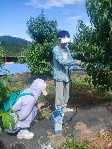 实践活动在大华山镇挂甲峪村大桃免套袋技术博士农场开展。实践活动期间,实践团的同学跟随老师调查桃园病虫害发生规律,制定物理和生物综合防治方案,调查不同大桃品种的生物学特征和生长规律。这种走出课堂、走到田间地头学习的模式,大大激发了同学们的学习兴趣,也让同学们更加深刻地体会到了劳作的辛苦和收获的幸福。