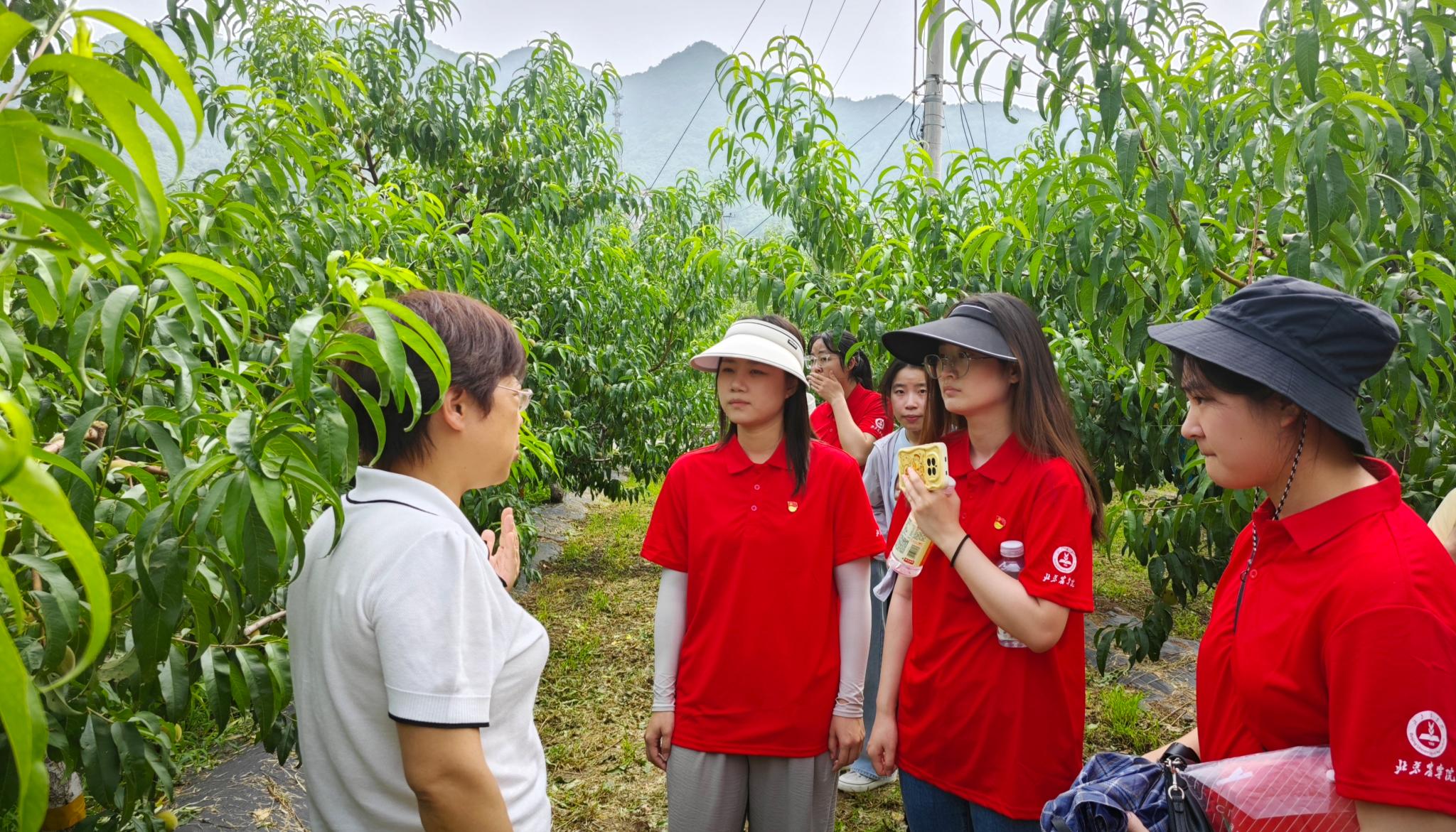 2024年7月16日,永利集团曹庆芹、张卿和张德凤带领暑期社会实践团的同学们成员深入大华山镇挂甲峪和苏子峪村,与村镇领导和技术人员探讨平谷大桃免套袋管理和苏子峪蜜枣种植遇到的技术难题和解决方案,助力特色果品产业高质量发展。