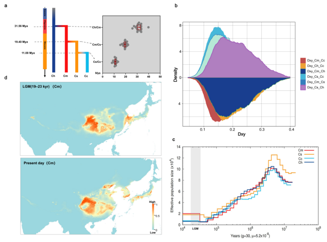 图1 东亚栗属植物的进化历史和有效群体大小