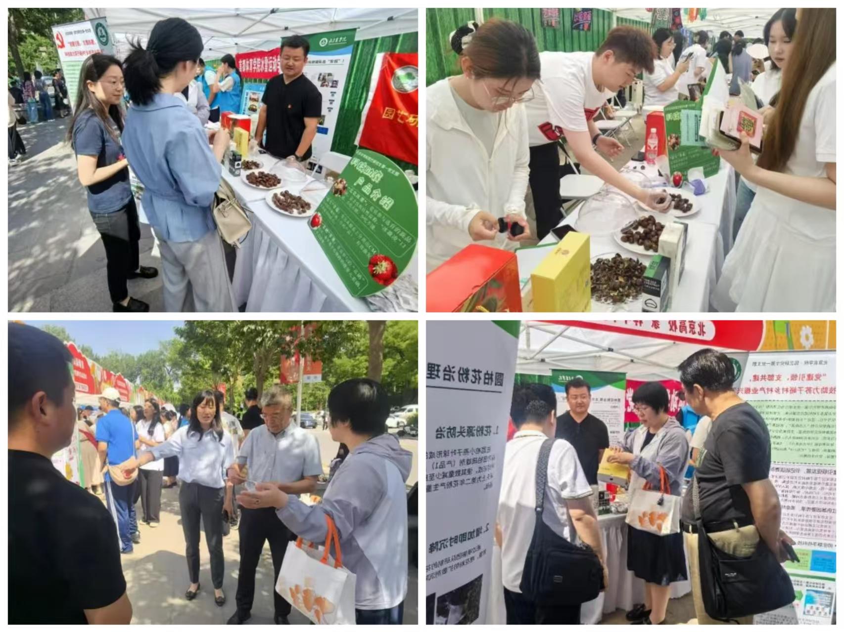 活动现场,园艺研究生第一党支部围绕“科技助农”带来特色产品。“北农冰栗”作为党员参与选育的新品种,凭借富含优质抗性淀粉等特点,展区前围满了前来品尝、了解的同学和老师们,大家尝过纷纷点赞以“多吃不怕胖、少吃不饿”的优势,精准契合当下健康消费需求,成为现场“人气担当”;“促生”草莓依托党员分离出的CM系列假单胞杆菌专利,有效激发根系活力,为草莓种植增效提供新路径;“富硒”苹果则借党员参与的富硒技术,赋予苹果独特健康价值,展现科技赋能农产品升级的魅力。