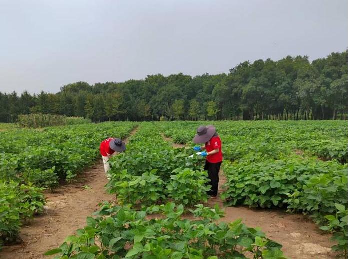 7月16日大豆分枝期,实践队首入田间分组除草,烈日下汗水滴土、手臂被划仍专注劳作,守护豆苗生长,8月豆株缀花孕苞时,实践进入精细观测阶段,队员聚焦抗病性分级记录与叶形花色建档,为良种筛选筑牢数据基础。