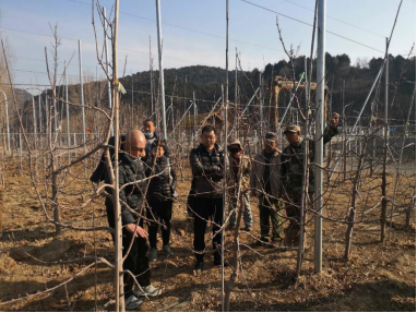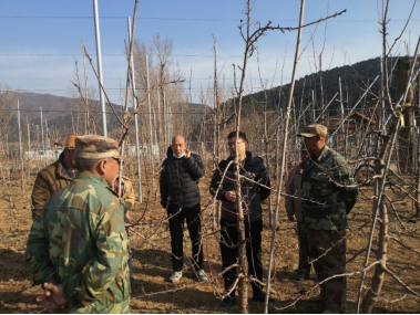 该公司2015年在怀柔区桥梓镇口头村建有120亩高标准的现代化苹果园,但由于技术管理不善,果园病虫害严重,苹果产量低品质差。通过果园现场考察,发现该果园属于矮化密植园,在树形管理调控方面存在修剪不到位问题,在病虫害防治方面存在用药不当和施药时期不准确的问题。园艺研究生1支部书记张卿、曹庆芹和王志忠三位分别针对发现的问题给基地的技术员和当地果品合作社的其他技术人员进行了深入浅出的分析和讲解,园艺研究生1支部于亚鑫同学在三位老师的指导下进行现场演示,让技术人员真正懂得矮化密植苹果树管理要点和关键点。