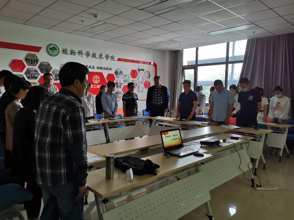 首先,全体起立,集体默哀3分钟;然后大家观看了袁隆平院士先进事迹纪录片,并结合党史学习教育开展交流分享。