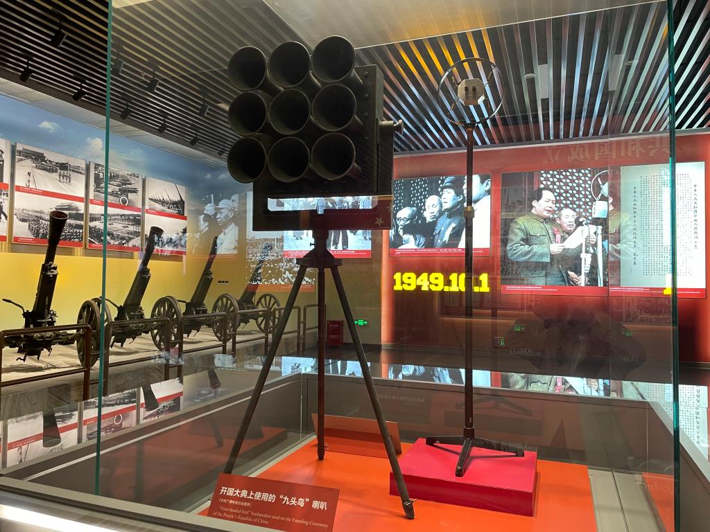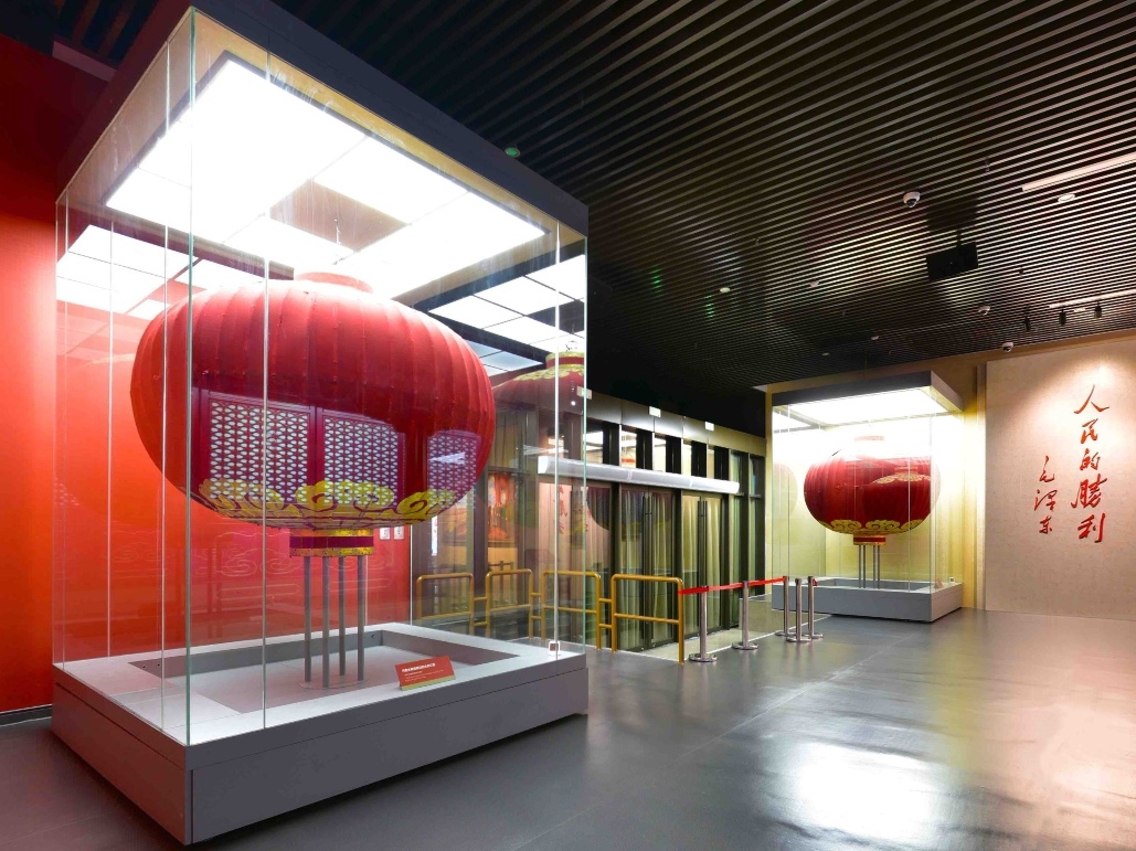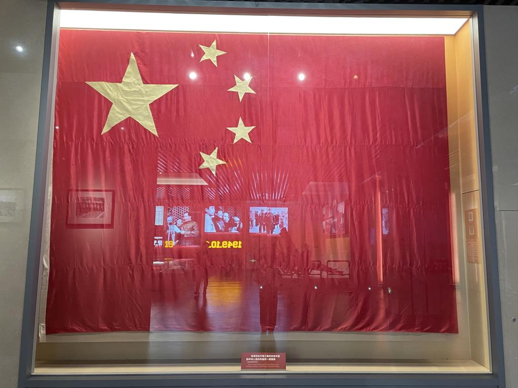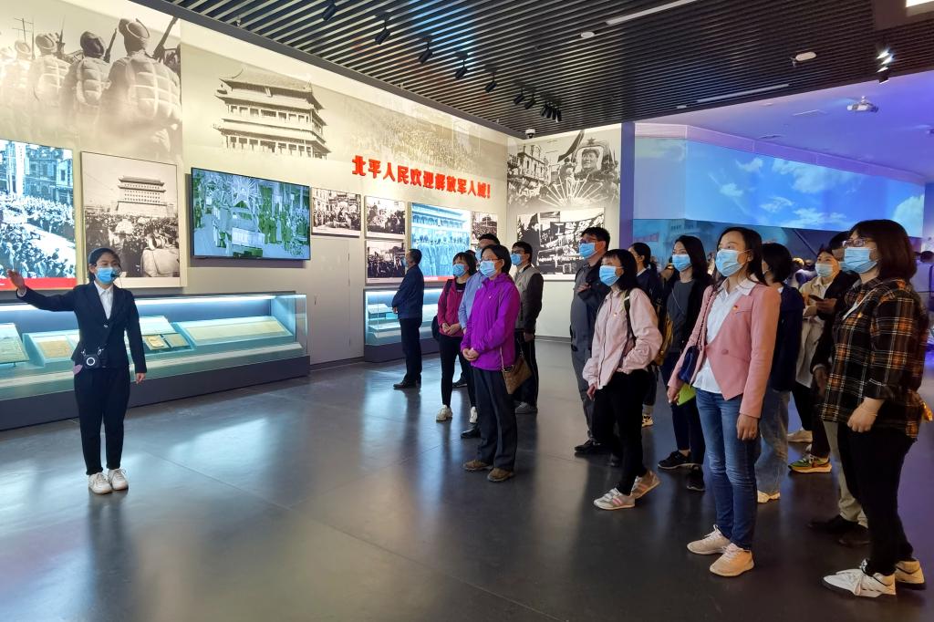 然后,在香山革命纪念馆工作人员的带领下,参观《为新中国奠基——中共中央在北京香山》主题展览。大家被一份份书信、一张张老照片、一件件旧衣物、一幕幕珍贵视频所吸引。800余张照片、1200余件文物和若干艺术品,仿佛将大家的思绪带回到那段不平凡的岁月。特别是当大家看到开国大典时由毛主席亲手升起的第一面五星红旗、“九头鸟”喇叭和天安门悬挂过的两盏2.6米高的大红灯笼时,仿佛置身于开国大典现场。