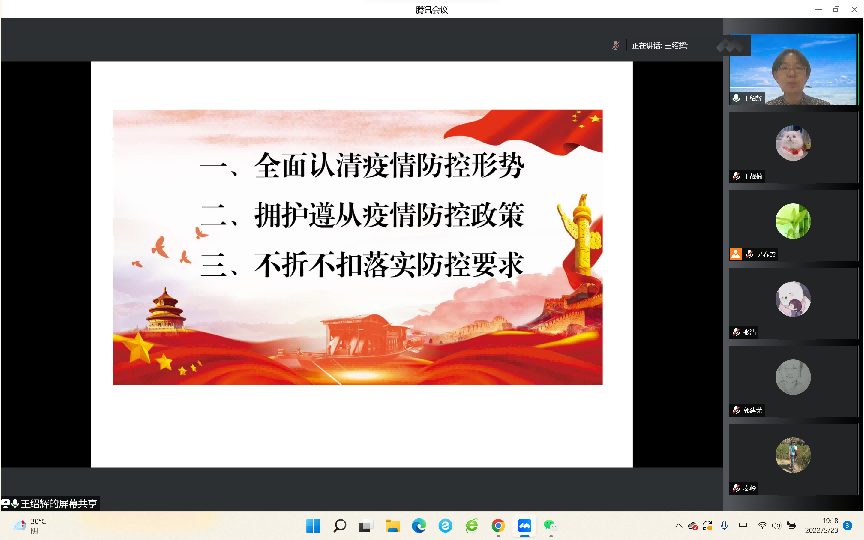 为深入学习贯彻习近平总书记关于疫情防控的重要指示精神,深化全院师生对当前疫情防控形势复杂性和严峻性的认识,贯彻落实北京市和公司疫情防控相关政策,5月23日晚,yl88858永利集团通过腾讯会议召开全院大会,公司党总支书记王绍辉和经理秦岭为师生讲授了一堂生动的疫情防控“大思政课”。公司全体教职工、博士后、联培博士和在校员工参加了会议,会议由秦岭经理主持。