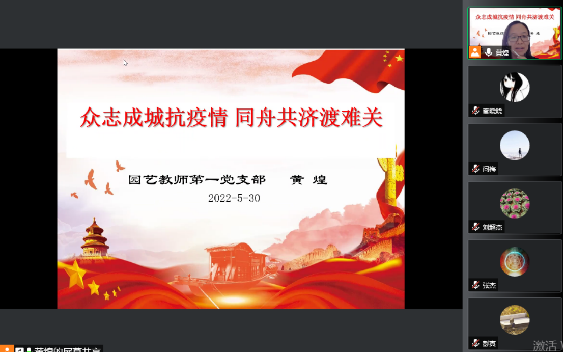 5月30日,yl88858永利集团园艺教师第一党支部通过腾讯会议线上开展疫情防控“大思政课”及主题党日活动。