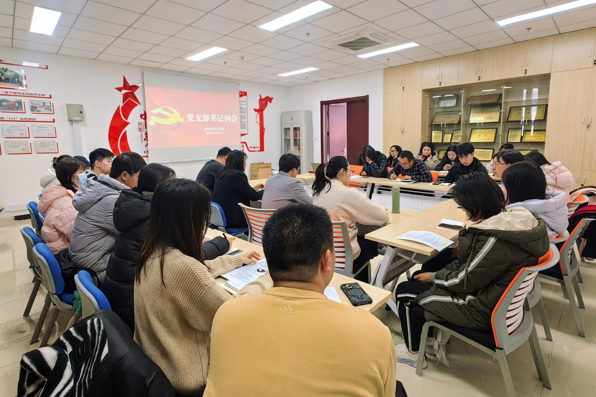 组织员王靓楠围绕如何落实“三会一课”制度进行专题培训,着重从“三会一课”制度的基本含义、重要作用、召开程序、有关规定和职能等方面,对支部党员大会、支部委员会议、党小组会及党课作了详细讲解。会上还聘任上一届党支部书记为党建工作顾问。