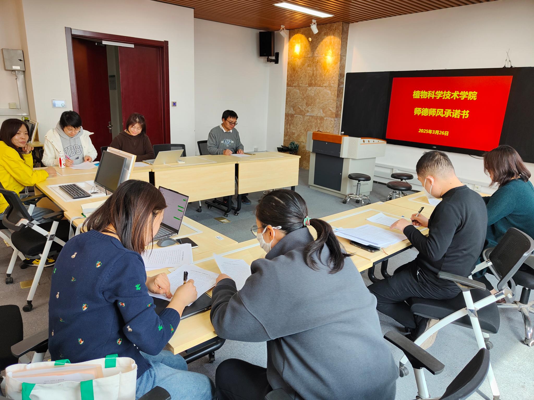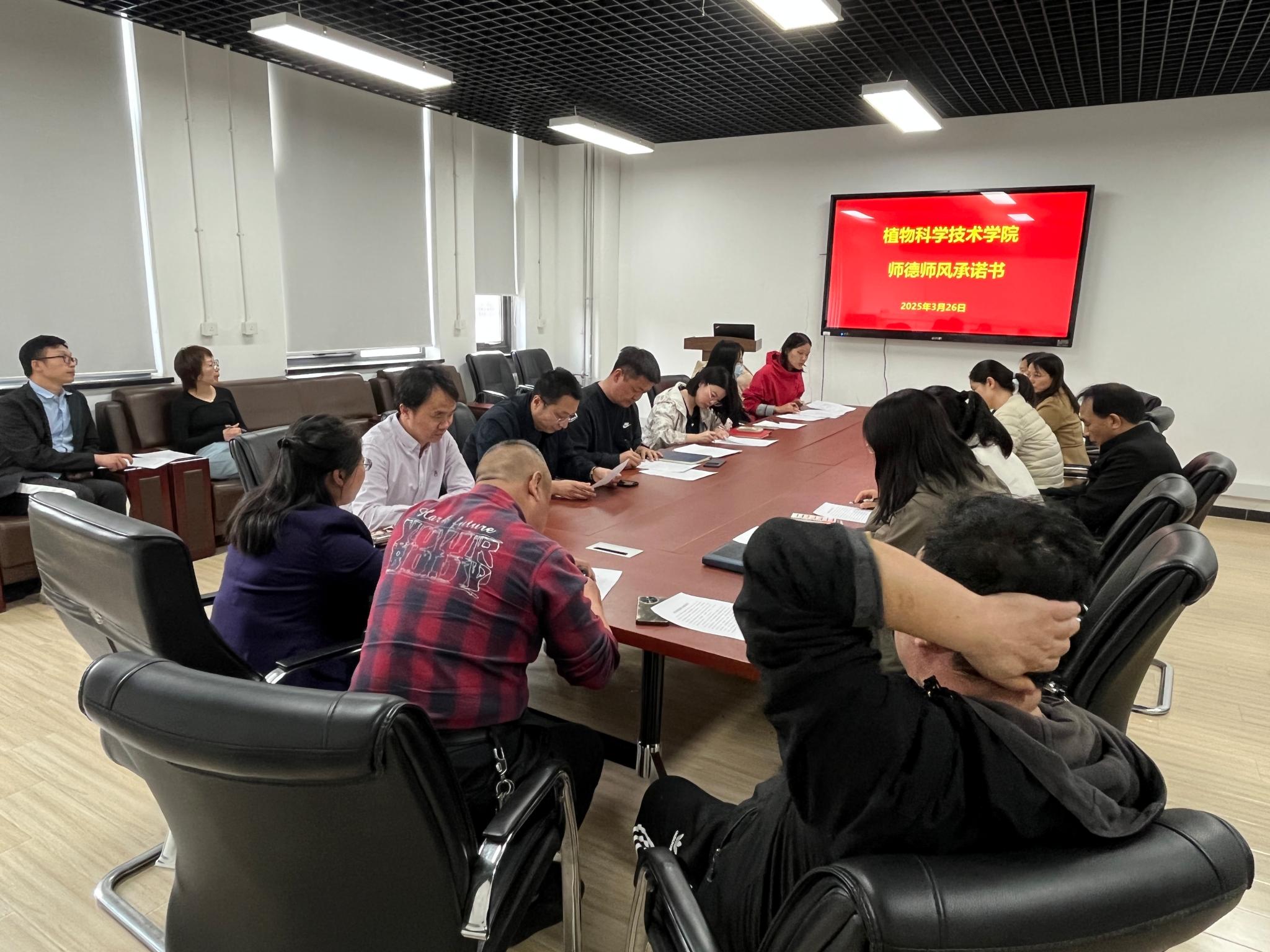 教师党支部组织全体教职工集体签署《师德师风承诺书》和《实验室安全及环境整治的承诺书》,郑重承诺将以实际行动弘扬践行教育家精神,自觉践行高校教师职业行为十项准则,严守师德师风红线标准,树立教师教书育人、立德树人良好形象,为培养德智体美劳全面发展的社会主义建设者和接班人贡献力量。