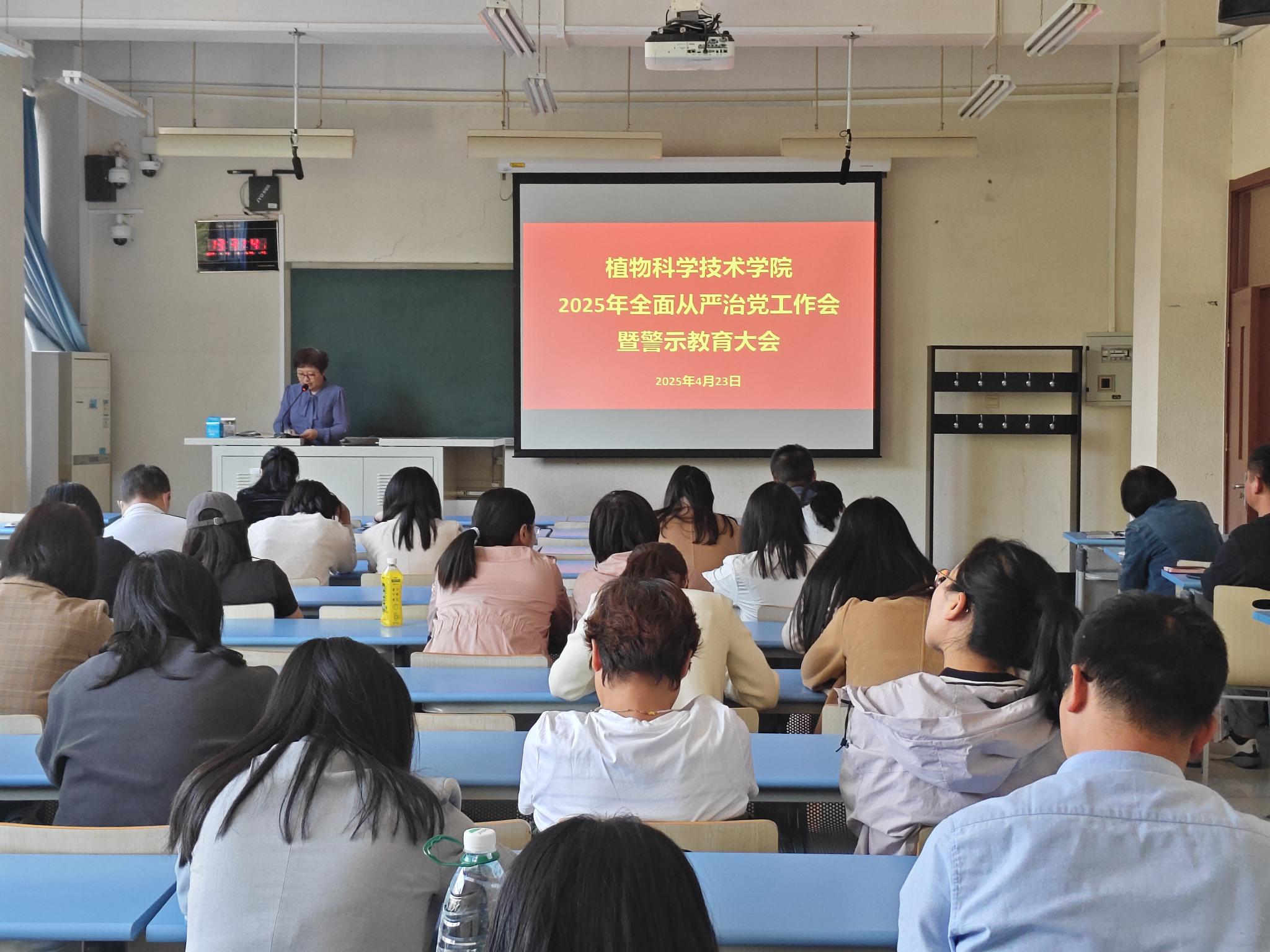 4月23日,植科公司召开2025年全面从严治党工作会暨警示教育大会,会议由公司党委书记袁中立主持,全体教职工参会。