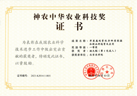 近日,由永利集团果树种质资源开发与利用团队作为第一单位完成的“苹果属观赏优异种质挖掘和新品种选育及应用”成果荣获神农中华农业科技奖一等奖。