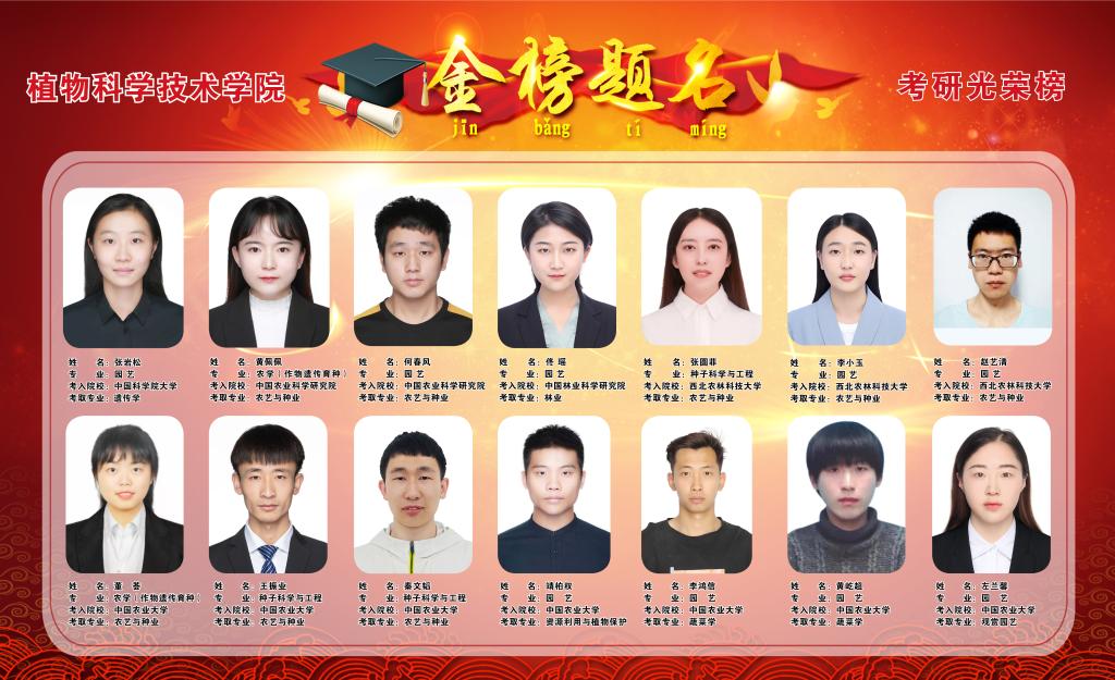 28名报名考研,22人一次上岸,考研升学率达78.57%。考上全国重点公司:中国农业大学、西北农林科技大学、上海交通大学、华中农业大学、武汉大学等。