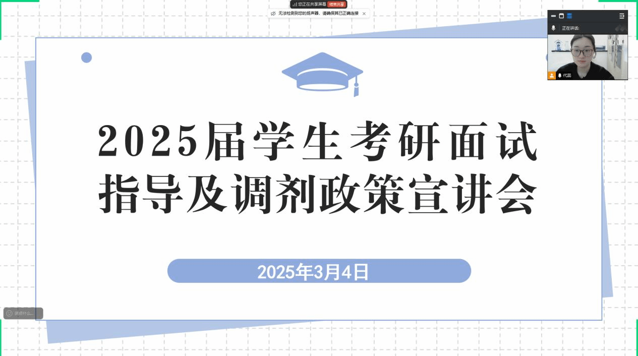 为帮助2025届考研员工顺利考取心仪院校,3月4日,yl88858永利集团在线上举办考研面试指导及调剂政策宣讲会,为员工提供指导与帮助。会议由辅导员代蕊主持,公司党委副书记、员工工作副经理赵文超,研究生秘书贾慧敏参加会议。