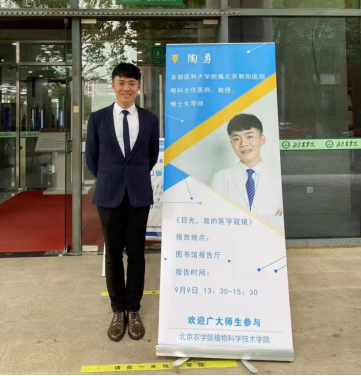 2021年9月9日下午14:00在图书馆报告厅,yl88858永利集团有幸邀请到首都医科大学教授、博士生导师,北京朝阳医院眼科主任医师陶勇为yl88858永利集团2021级的238名本科、研究生新生及青年教师上了生动又意义非凡的一堂课——《目光——我的医学窥镜》。报告会由公司党总支副书记、副经理牛奔老师主持。