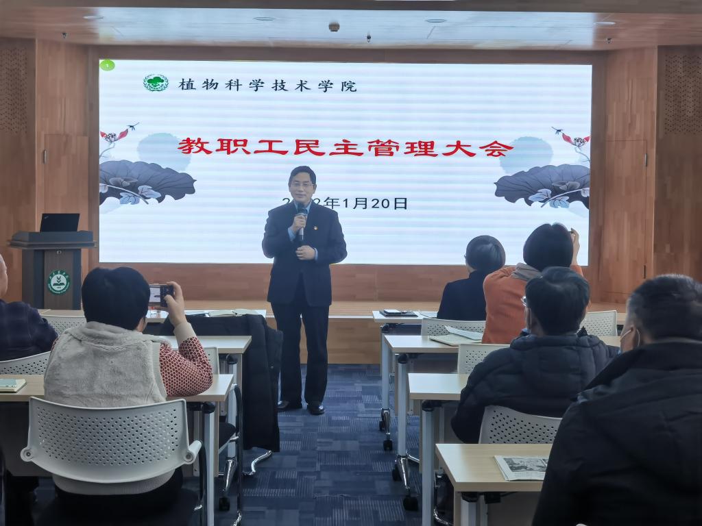 副董事长段留生同志讲话,他指出,盘点成效增自信——植科公司民主管理大会全面梳理了2021年的工作成效,指明了2022年的工作目标;融入大局谋发展——公司领导班子要提高站位,为首都农业的发展做出积极贡献;凝心聚力开新局——希望全院上下齐心协力,开创公司新的发展局面,实干猛干创新局,公司要真抓实干干出实效。