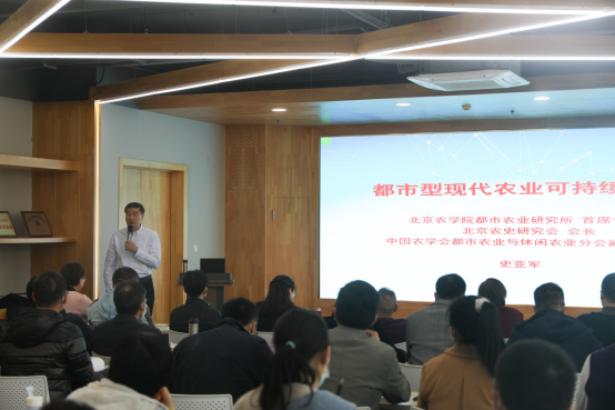 史亚军教授从都市型现代农业的概念、功能与实现途径、公司都市农业创新发展历程、都市型高等农业教育特色打造、北京都市农业高质量发展、公司全力推进北京农业中关村建设和开展低收入村帮扶等方面,结合国内外都市农业发展新方式、新方法和人才培养新定位、新特征等具体内容进行了全面解读。结合植物科技公司蓬勃开展的乡村振兴与帮扶工作,提出要乘势发展,创新具有特色的工作机制。