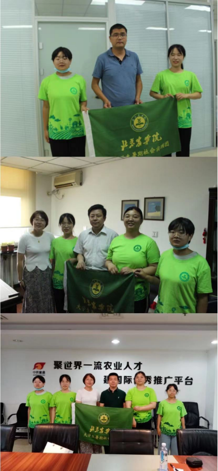 一生都在兢兢业业奉献科研的中国农业大学的冷平、郭仰东教授,学成归国,走在教育前线,育桃润李。学农不忘初心,身居要职,但是爱农之心随时随地迸发,服务着身边的农民,他们是北农的学子,也是昌平区延寿镇罗立华镇长和流村镇的胡海文副镇长。百姓的菜篮子不仅有菜还要有质量,百姓要吃饭还要吃的起饭,这是一个农业企业的使命,对消费者负责,也对自己的企业员工负责,农业企业的发展和生存或许需要更多的付出,他们的所做让更多农业人才找到了自己的立足点,他们曾被教育学农爱农,现在在踏踏实实的做农业,他们是北京科润维德生物科技有限公司董事长李荣旗和北京中农富通园艺有限公司副总经理米志强。他们曾经十几年甚至几十年和农民同吃同住,从一个普通的科员到现任的要职,对他们来说最高兴的就是推广了新的品种,得到了农民的信任,真正做了实事,回忆起的难忘的事迹都是田间地头的那些年和那些事。他们真正走下了基层,服务了农民,为三农发展做出了贡献。实践团有幸采访到了北京农业技术推广站李红岺副站长、大兴区农业服务中心党组成员、副主任陈宗光、昌平农业服务中心田炜炜、海淀区农业农村局农科所所长郑禾、大兴区植保植检站副站长张桂娟、还有90后新锐北京金六环农业园园区主任祝宁、海淀区农业农村局农科所张子鹤、霍姗姗、贡瑞明。